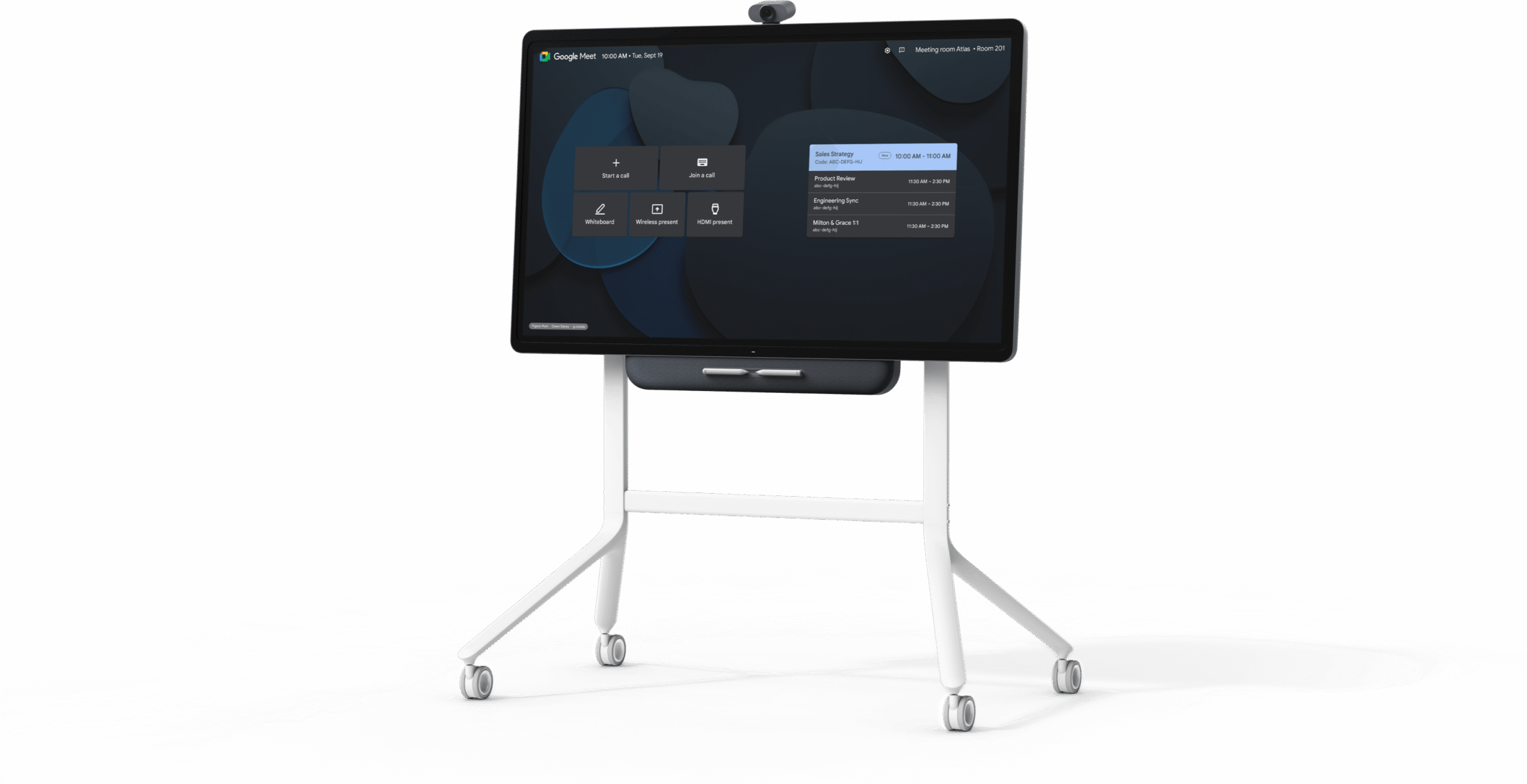 A single tap is all it takes – Google Meet works with Google Calendar, so your next meeting is already on screen. Just walk in the room and tap Board 65 to get your meeting started.
